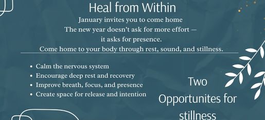 Begin the new year by slowing down and returning home to your breath and body. This one-hour sound bath is an invitation to rest deeply as healing vibrations from crystal bowls and instruments gently calm the nervous system, release tension, and create space for clarity and renewal. No experience necessary — simply arrive, get comfortable, and receive.